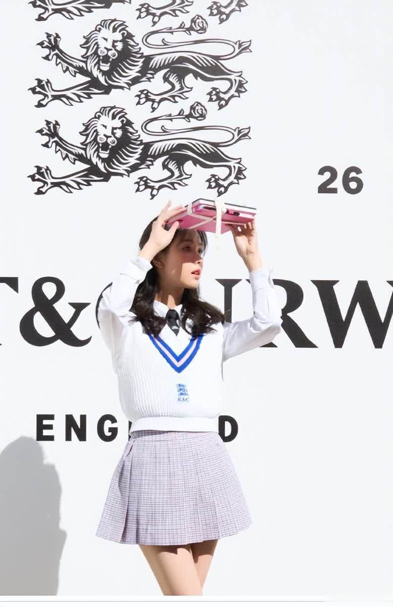 近日,陈都灵晒出一组伦敦时装周造型图,图中陈都灵学院风穿搭,衬托出她的清纯靓丽。画面中,陈都灵呢爱配投资,穿着那种白色的毛衫,也算是那种白蓝相间的那种,也是设计感十足,下半身呢,则搭配着那种格纹的短裙。